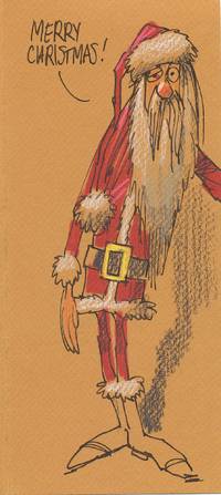 Original Comical Drawing of Santa Claus, Signed